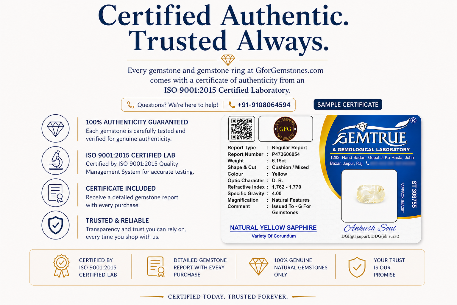📜 Lab Certified & Authentic: Comes with ISO-accredited gemstone certificate, GFG authenticity card, and premium packaging box, ensuring purity, energy, and trust.